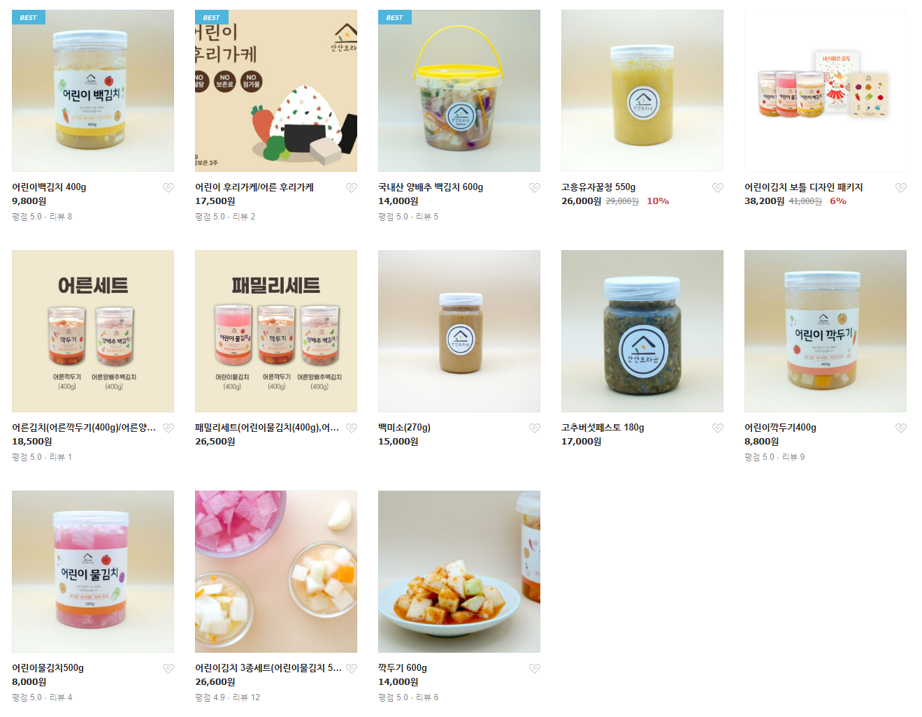 - 메뉴 : 어른 김치, 어린이 김치, 백미소 등 조미료를 넣지않고 만든 발효 반찬 및 장류
